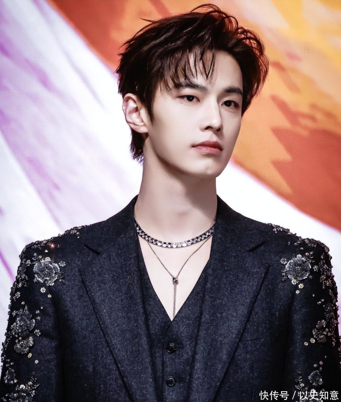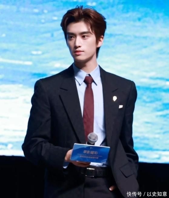 他选择一套剪裁利落的灰白休闲套装亮相,身形挺拔修长,面部洁净无修饰,清爽少年感与沉稳青年气质交融共生,毫无违和。
