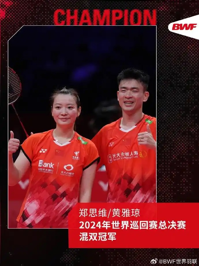 值得一提的是,由于总决赛冠军积分超过4站超级1000赛的同名次积分,这枚金牌成为“凤凰组合”合作以来分量最重的一枚混双金牌。两人尚未染指奥运会、世锦赛两项顶尖大赛冠军,此次登顶无疑为他们的洛杉矶奥运征程注入强劲信心。